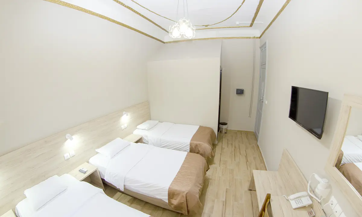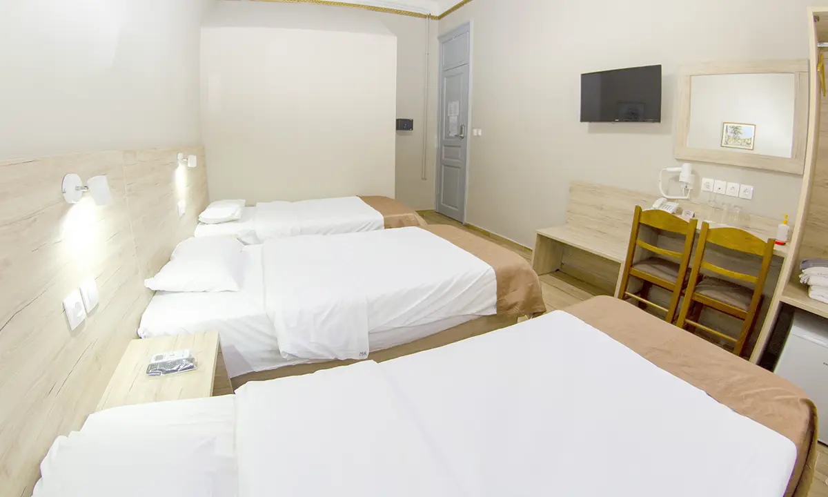 La camera tripla dell’hotel Nea Metropolis offre comfort e funzionalità per tre ospiti. In un ambiente elegante che combina l’architettura tradizionale dell’edificio storico con comfort moderni, è perfetta per gruppi di amici, famiglie o colleghi in visita a Salonicco. Arredata con cura, dispone di letti confortevoli, Wi-Fi gratuito, aria condizionata, TV a schermo piatto e bagno privato. La posizione centrale garantisce un facile accesso alle attrazioni principali, ai ristoranti e ai centri commerciali della città.